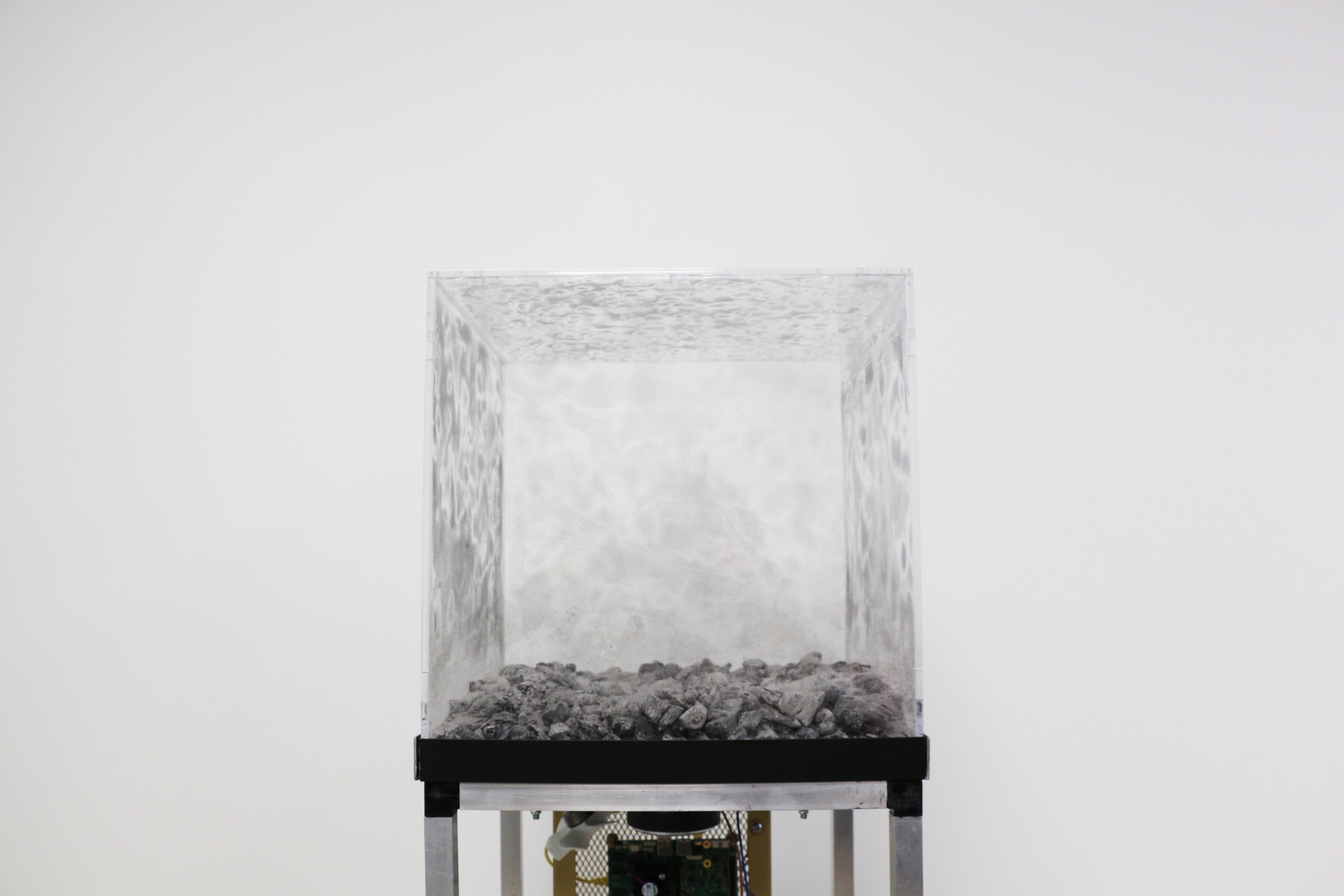 Ash represents the corruptible condition of man and is a symbol of penance. Throughout the ages, across different cultures and religions, it’s used to evoke death, transience, repentance, but also purification and resurrection. The ashes express, at the same time, the intensity of believers' prayer for forgiveness and the Phoenix Arab’s resilience who rises from it. In these terms Pier Alfeo uses it - stripping it of its timeless dimension to clothe it with an ‘eternal now’ that anchors it to the present - as a cry to be addressed to contemporary society so that it may wake up from its torpor and open its eyes to the harmful effects of anthropization on nature. The time has come for man to stop and listen. Thanks to CC.beta, Nature communicates with us, its audience. By means of a system composed of a probe and an installation, even infinitely distant places - in real time, by web - send and receive data from surveys carried out on noise pollution and air quality: constant remote monitoring of mutations and/or environmental alterations in the area where the device is located. Technology becomes, therefore, a virtuous instrument in the hands of man to reverse the course of his destiny, to begin an exchange and interaction, this time fruitful, with that same nature that he’s leading to collapse. "CC.beta" intends to focus fully on the analysis and on the continuous assistance of a specific place to protect and to safeguard, and to create a bridge between art and awareness, environment and technology, sound and listening.