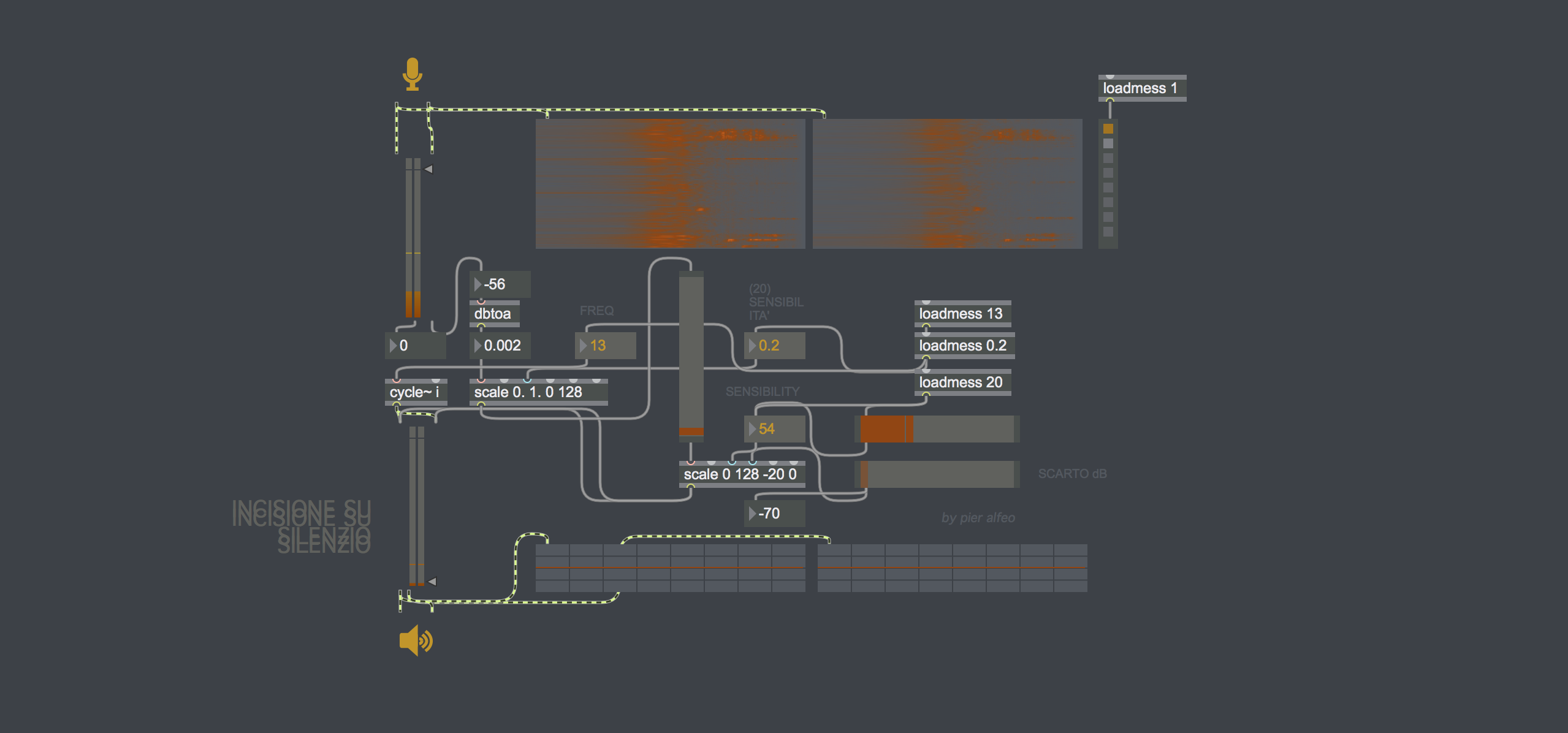 The movement of the speaker determines the features of the “sonogram”, and it’s made with an ad-hoc software which analyzes the presence of “sound pollution” and transmits back an infrasound frequency.