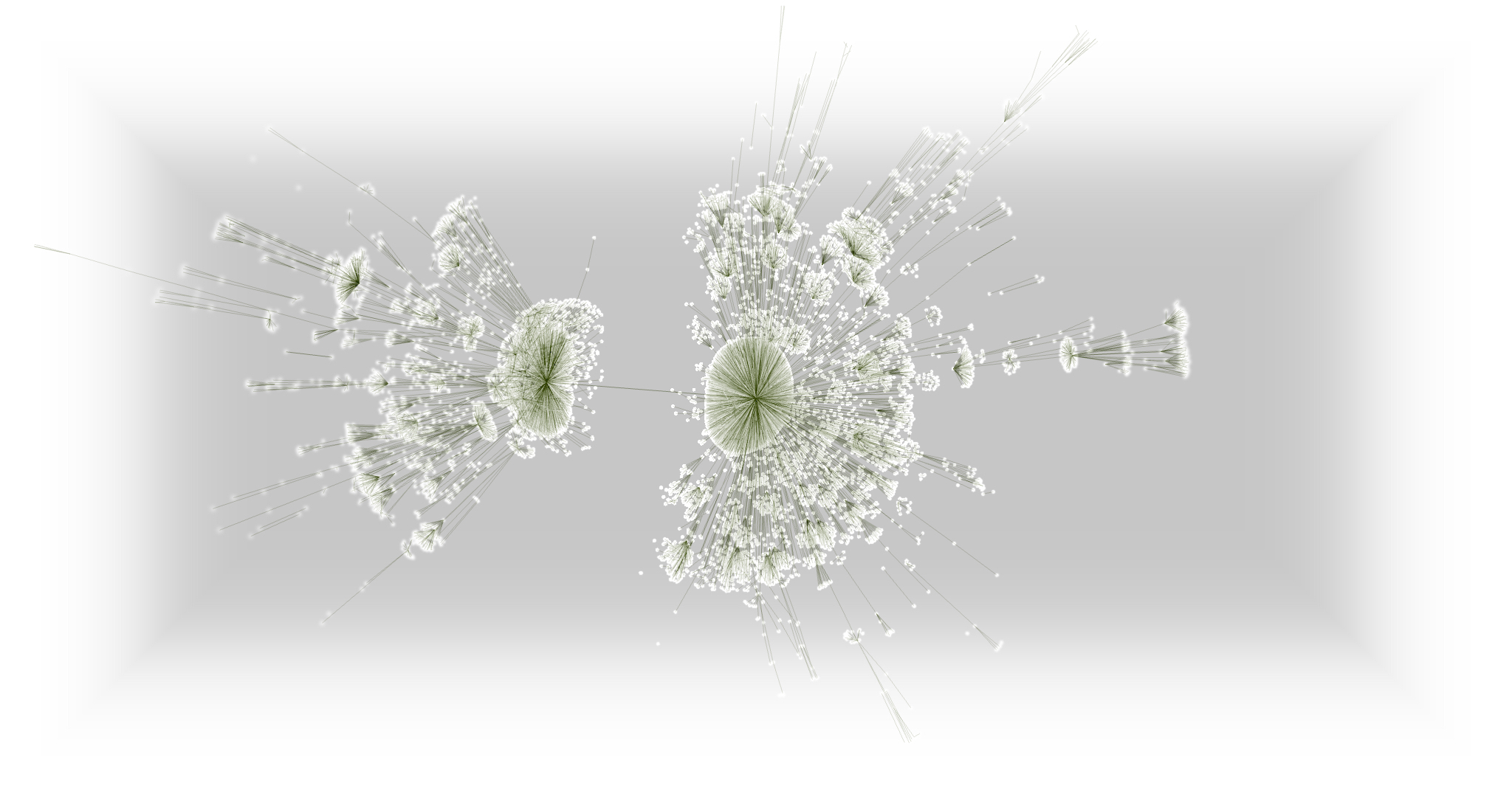 Multimedia Installation, audio reactive virtual dandelion graph structure based on granular sample instancing of buffered whiffle audio signal.
