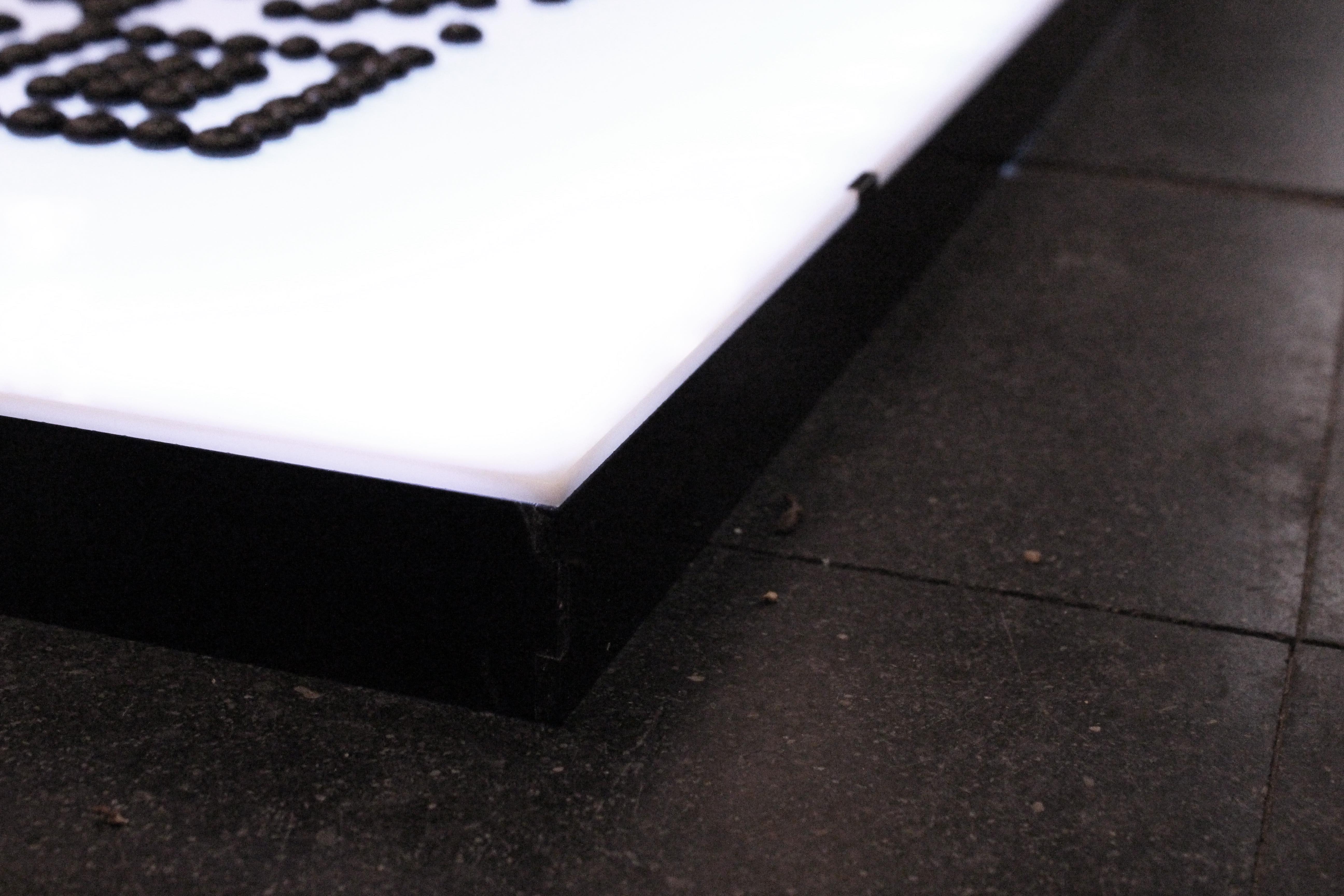 Moving boxes, paint, plexiglas, led, pawns Go Game.