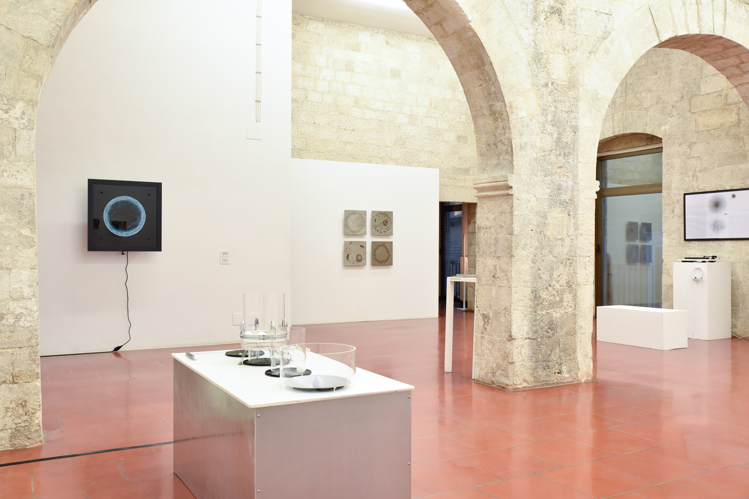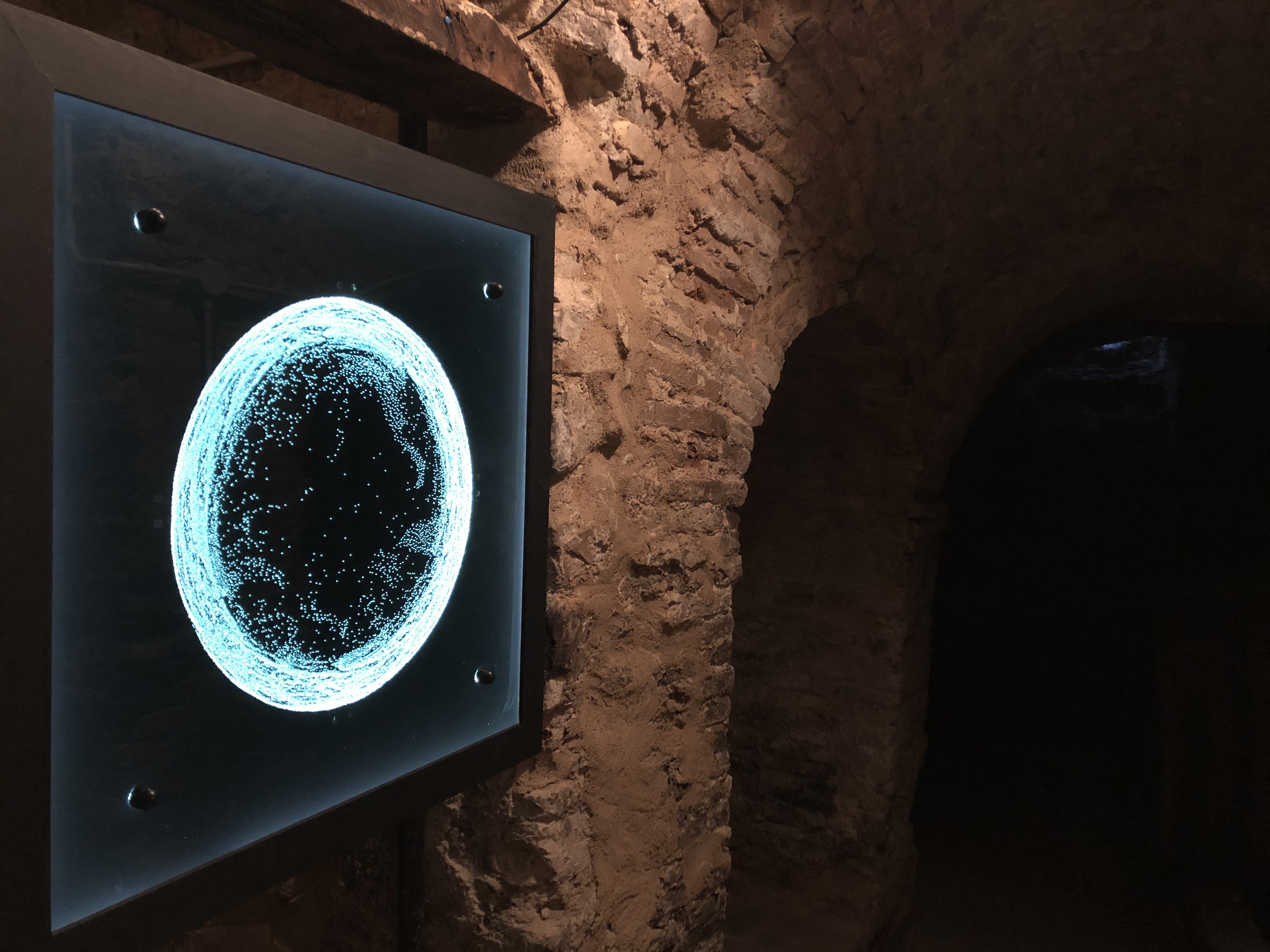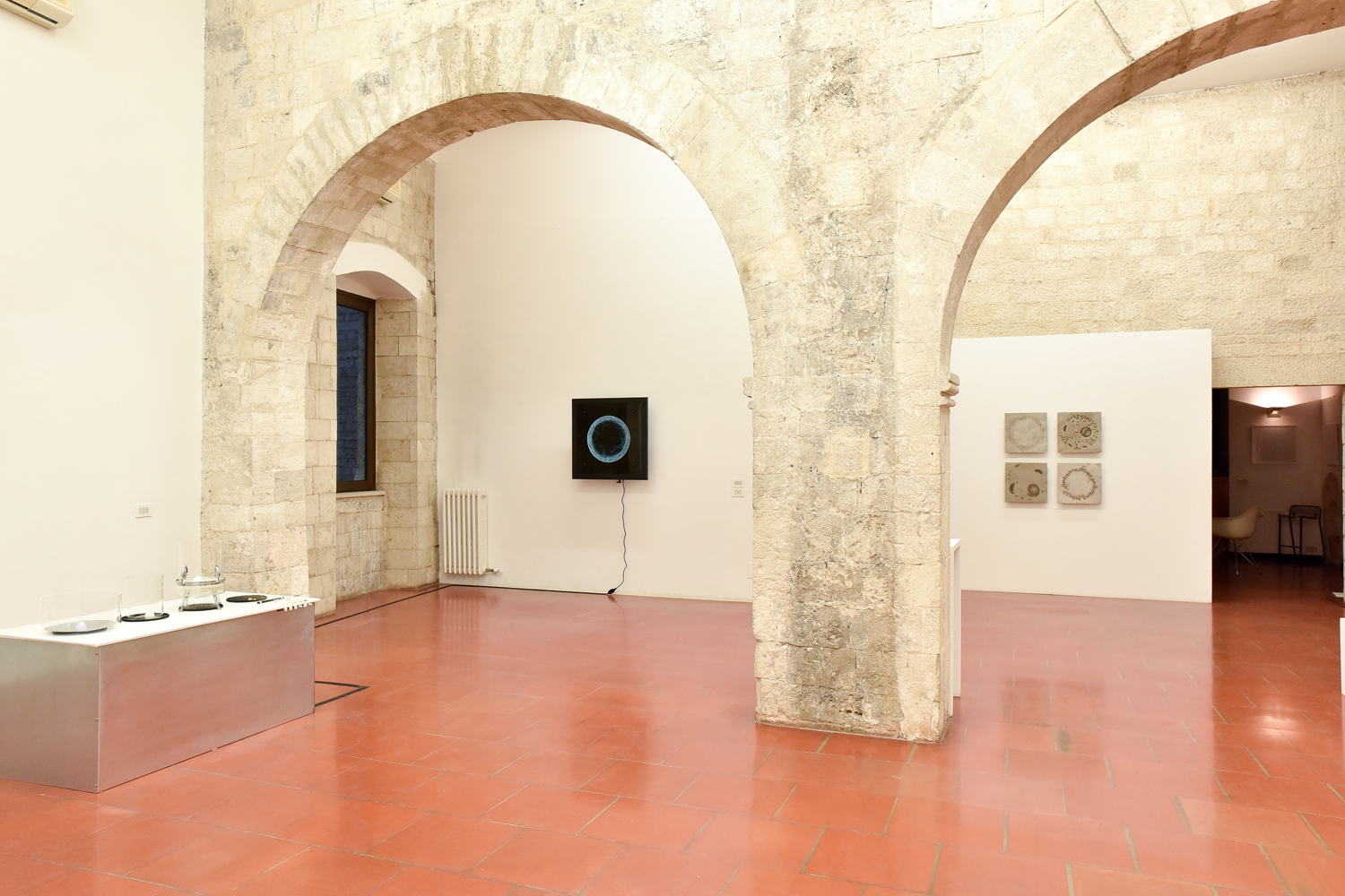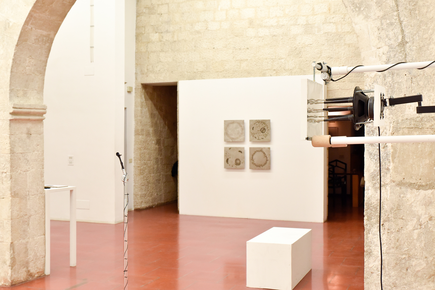 The ineluctable flow of time is a theme addressed also by the sound installation Hypodèrmide by Pier Alfeo. The slowly flowing water, that could stop at any moment, induces the same anxiety caused by hourglasses in 17th century paintings, which warn us that the course of events will eventually come to an end. The electronic sounds produced by the work seem indeed to be echoing from another world.