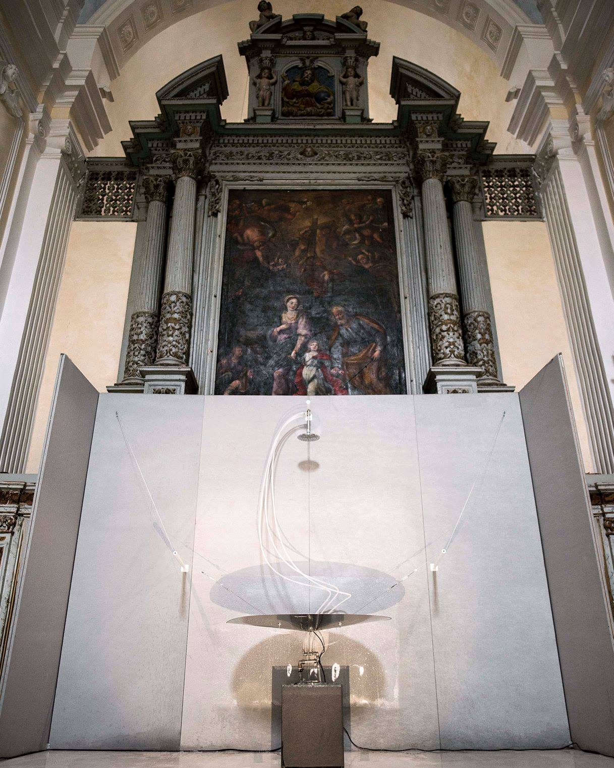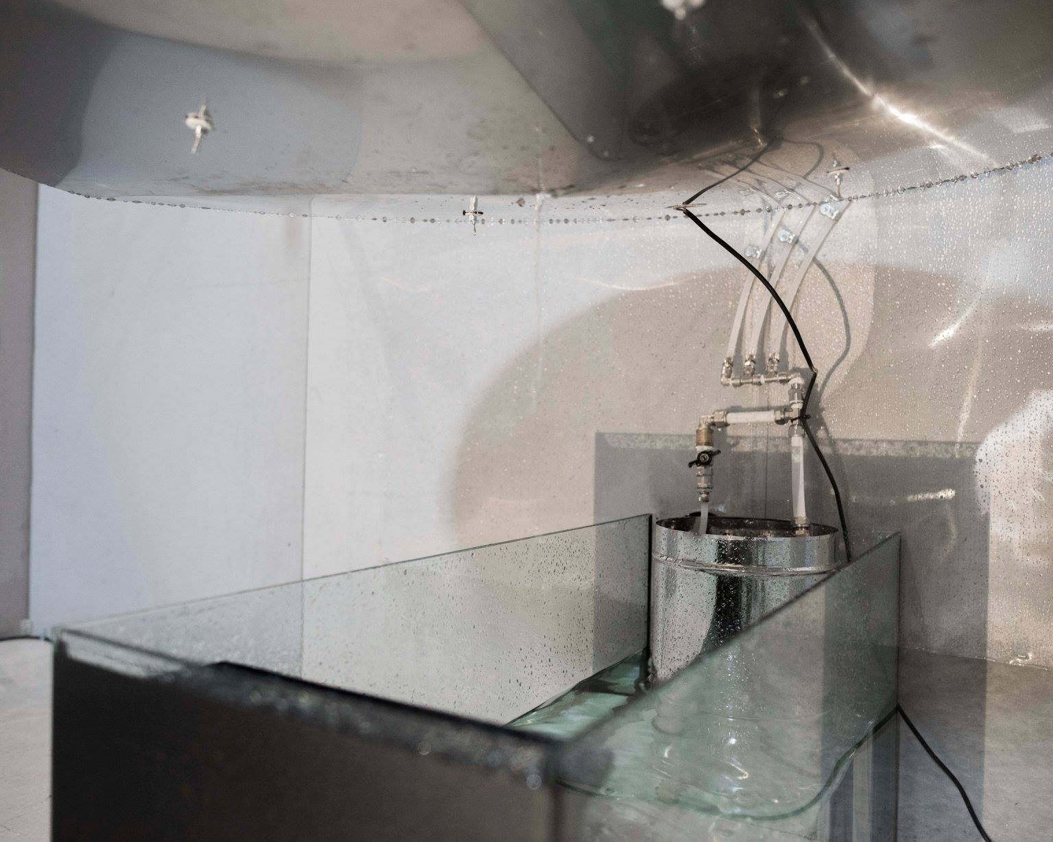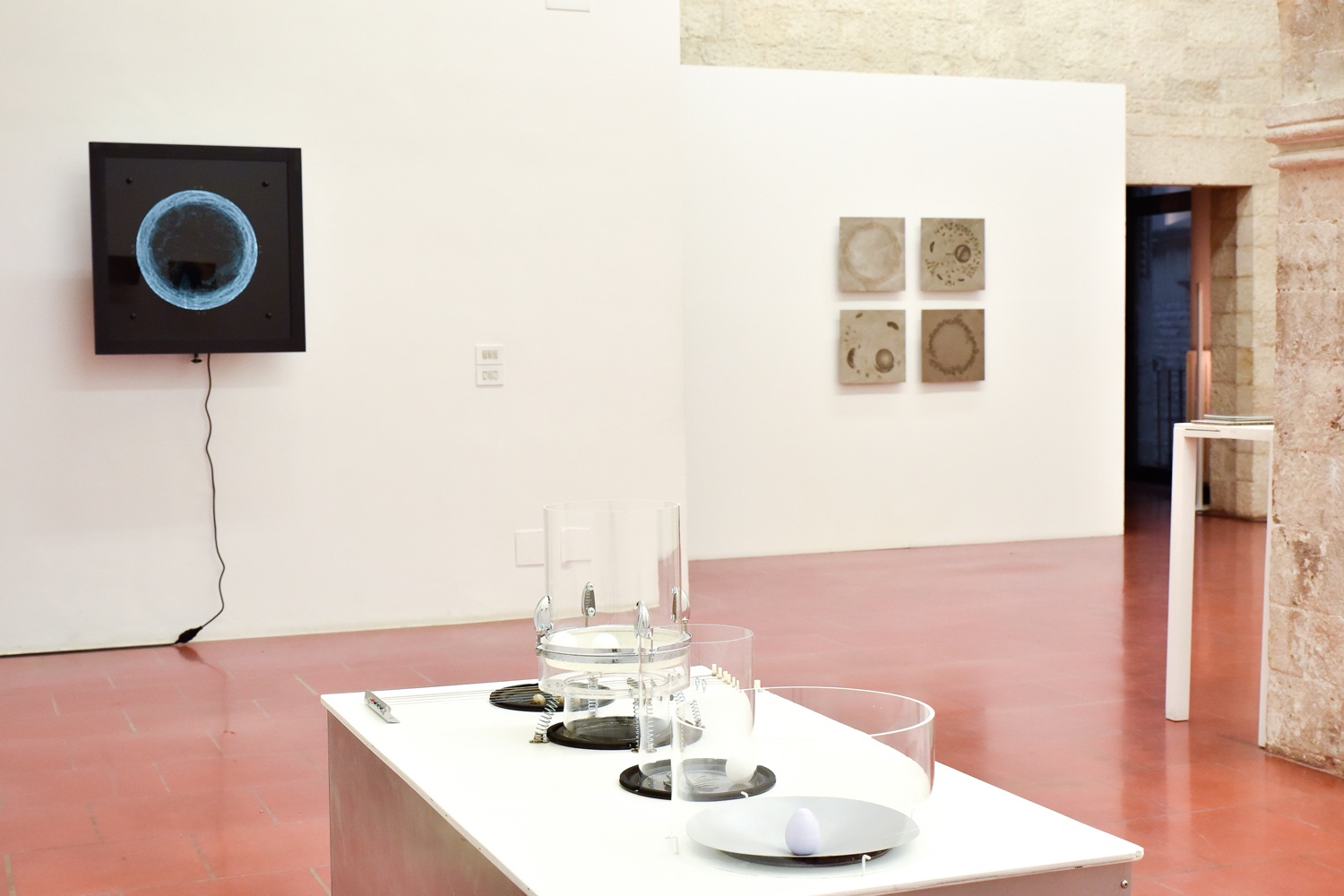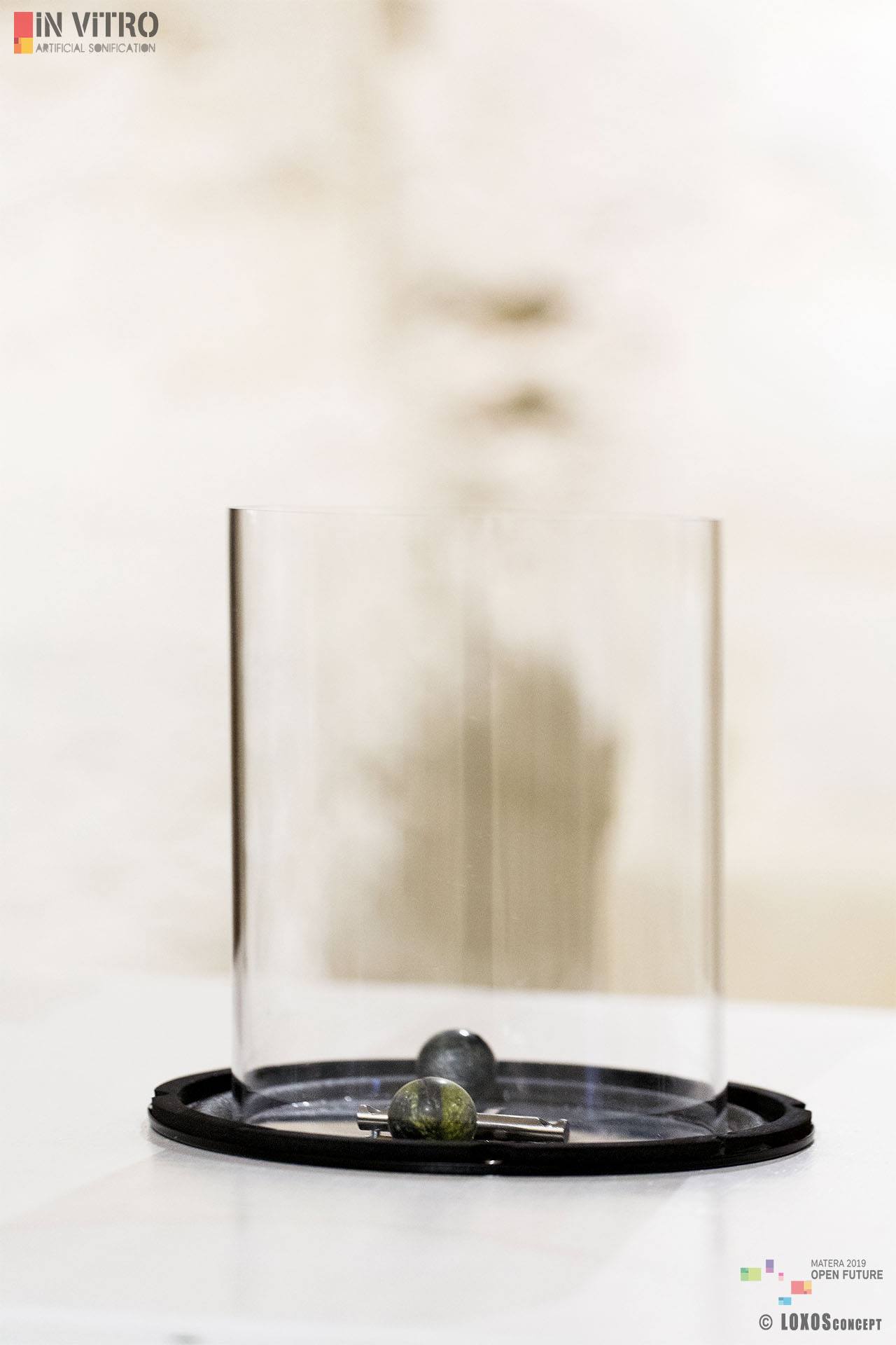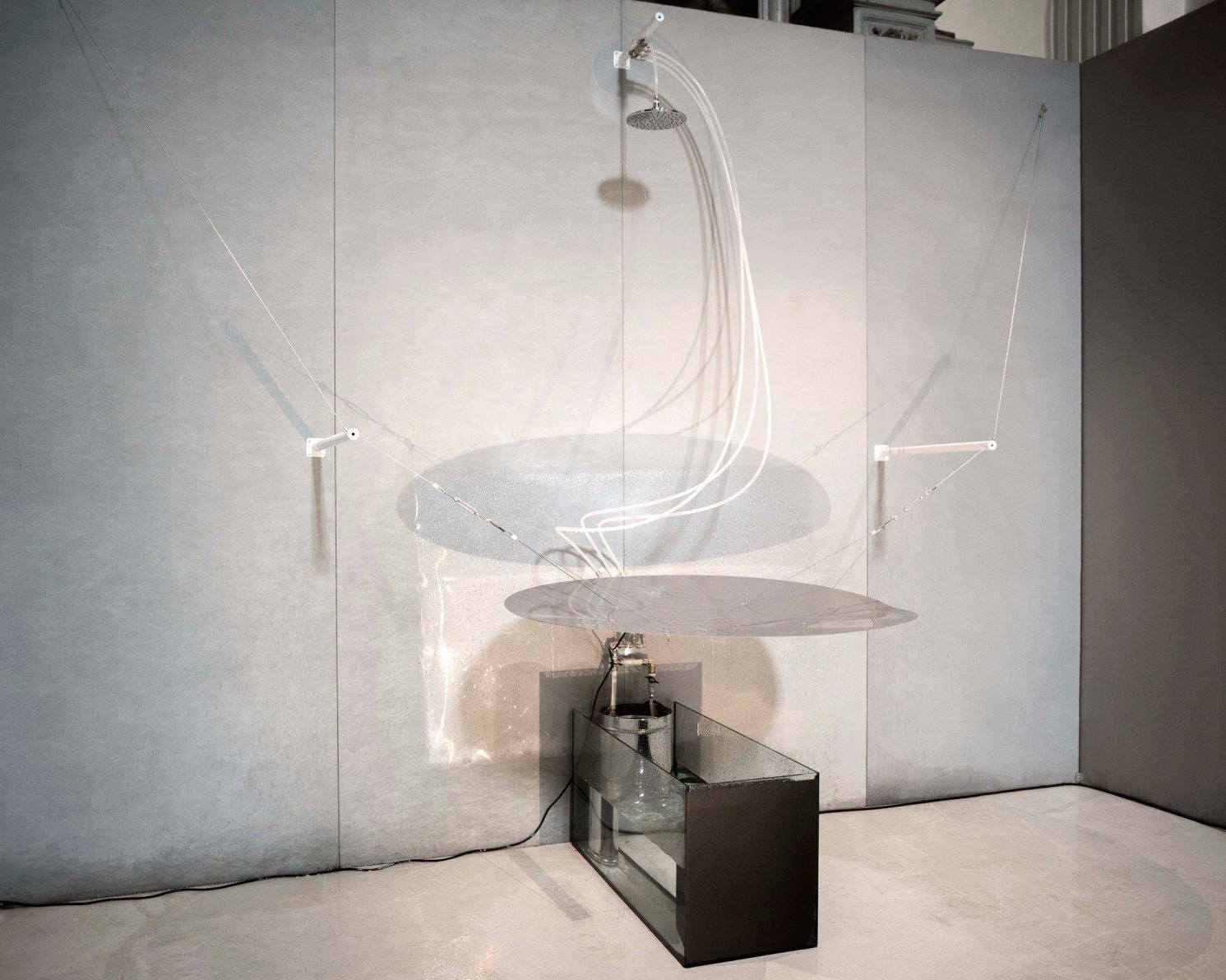 The ineluctable flow of time is a theme addressed also by the sound installation Hypodèrmide by Pier Alfeo. The slowly flowing water, that could stop at any moment, induces the same anxiety caused by hourglasses in 17th century paintings, which warn us that the course of events will eventually come to an end. The electronic sounds produced by the work seem indeed to be echoing from another world.