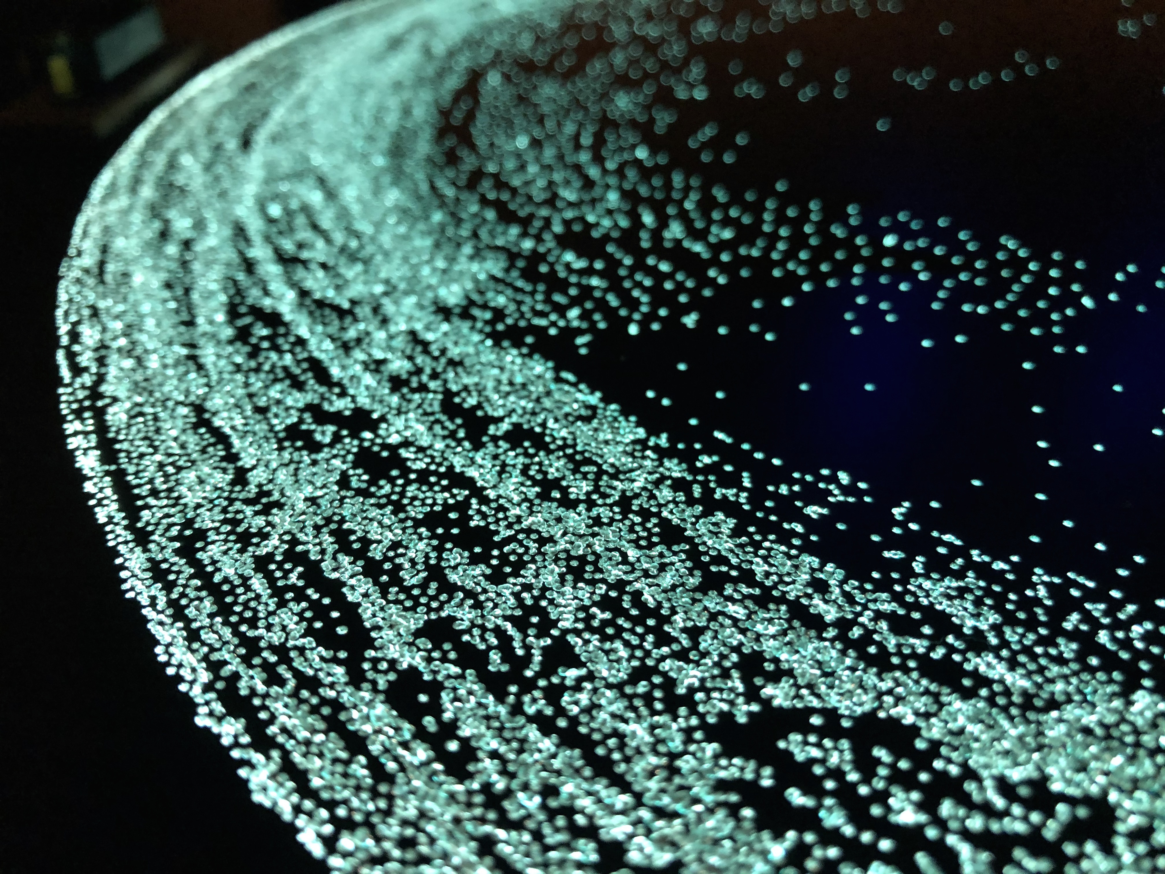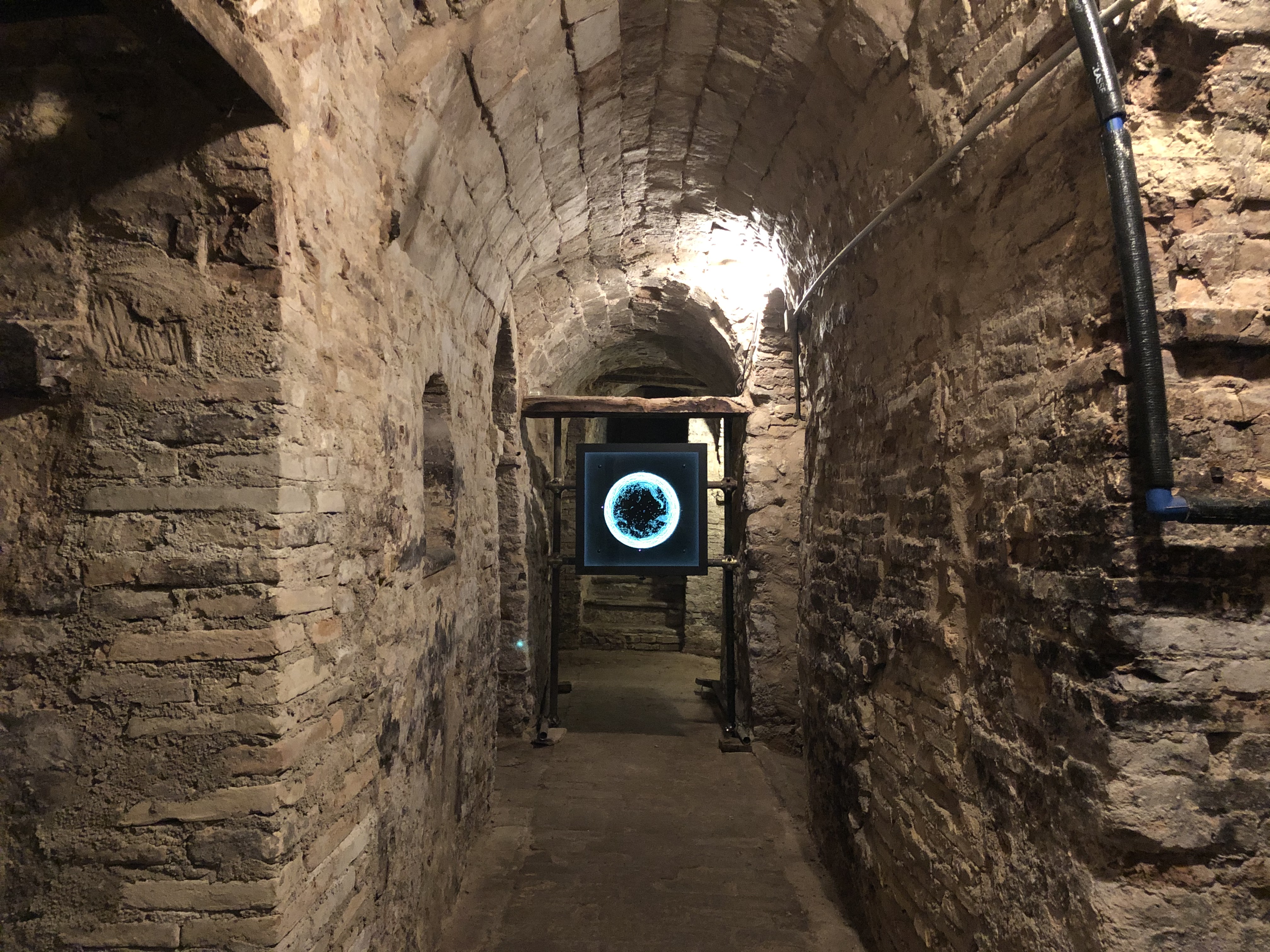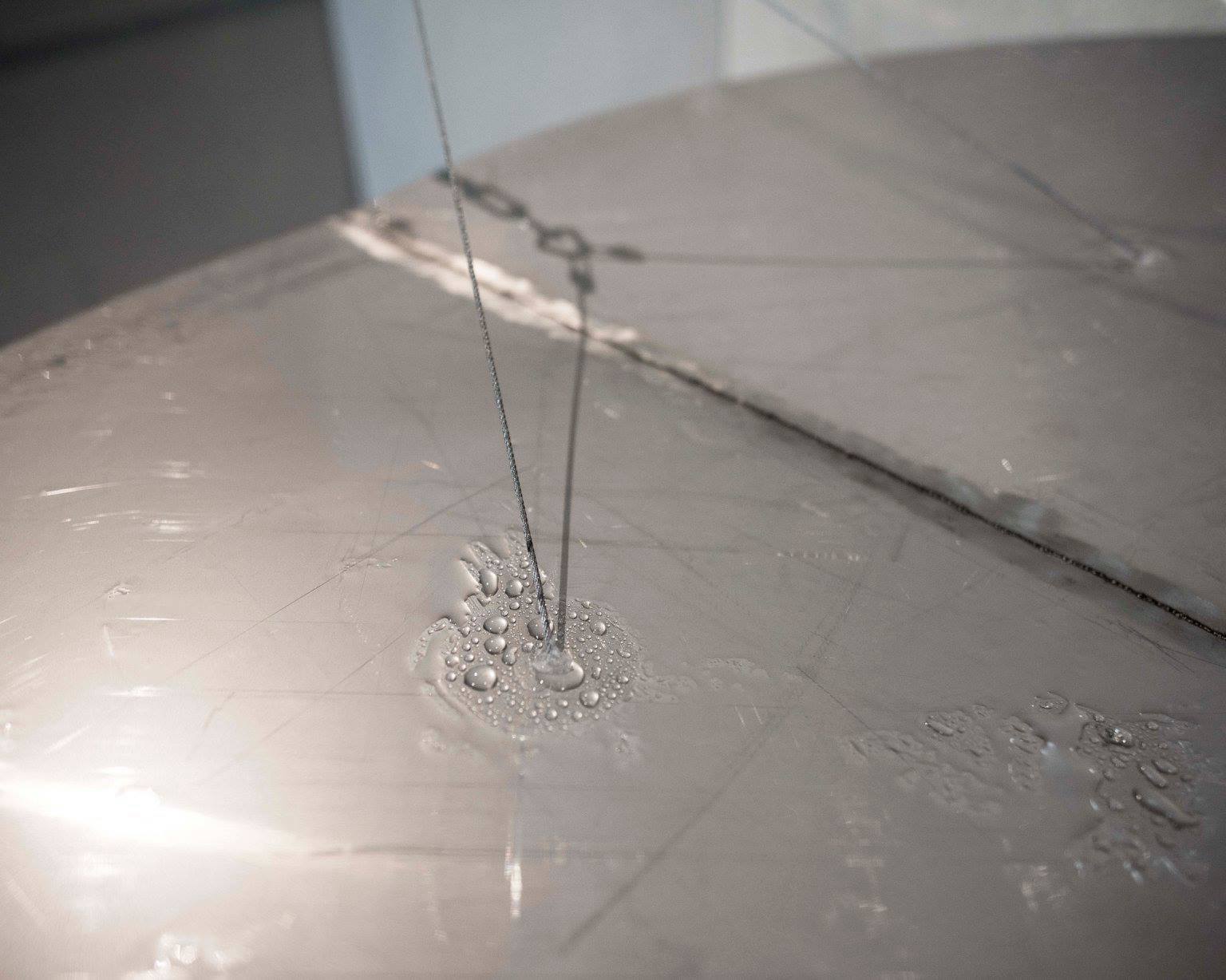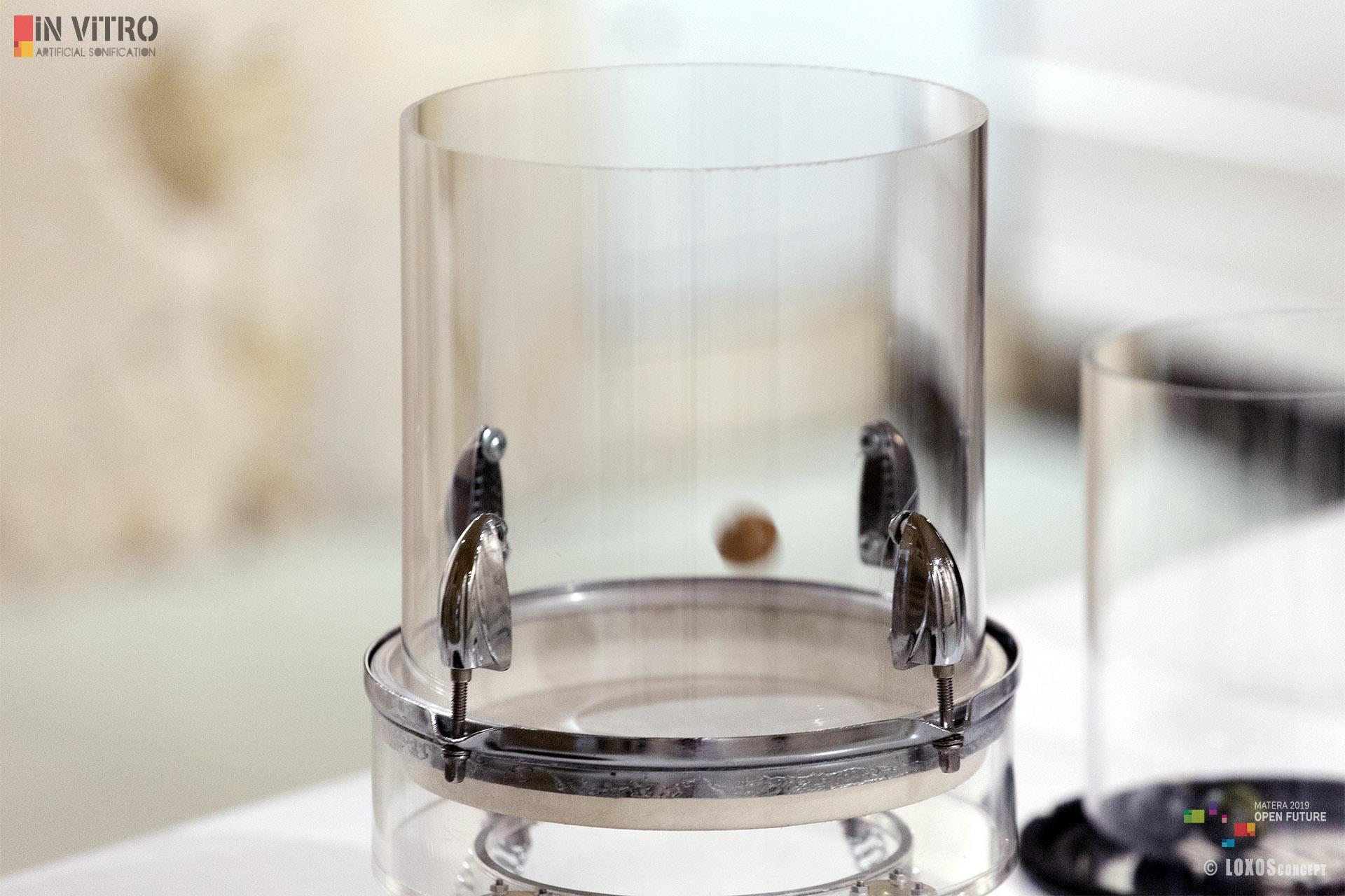 The ineluctable flow of time is a theme addressed also by the sound installation Hypodèrmide by Pier Alfeo. The slowly flowing water, that could stop at any moment, induces the same anxiety caused by hourglasses in 17th century paintings, which warn us that the course of events will eventually come to an end. The electronic sounds produced by the work seem indeed to be echoing from another world.