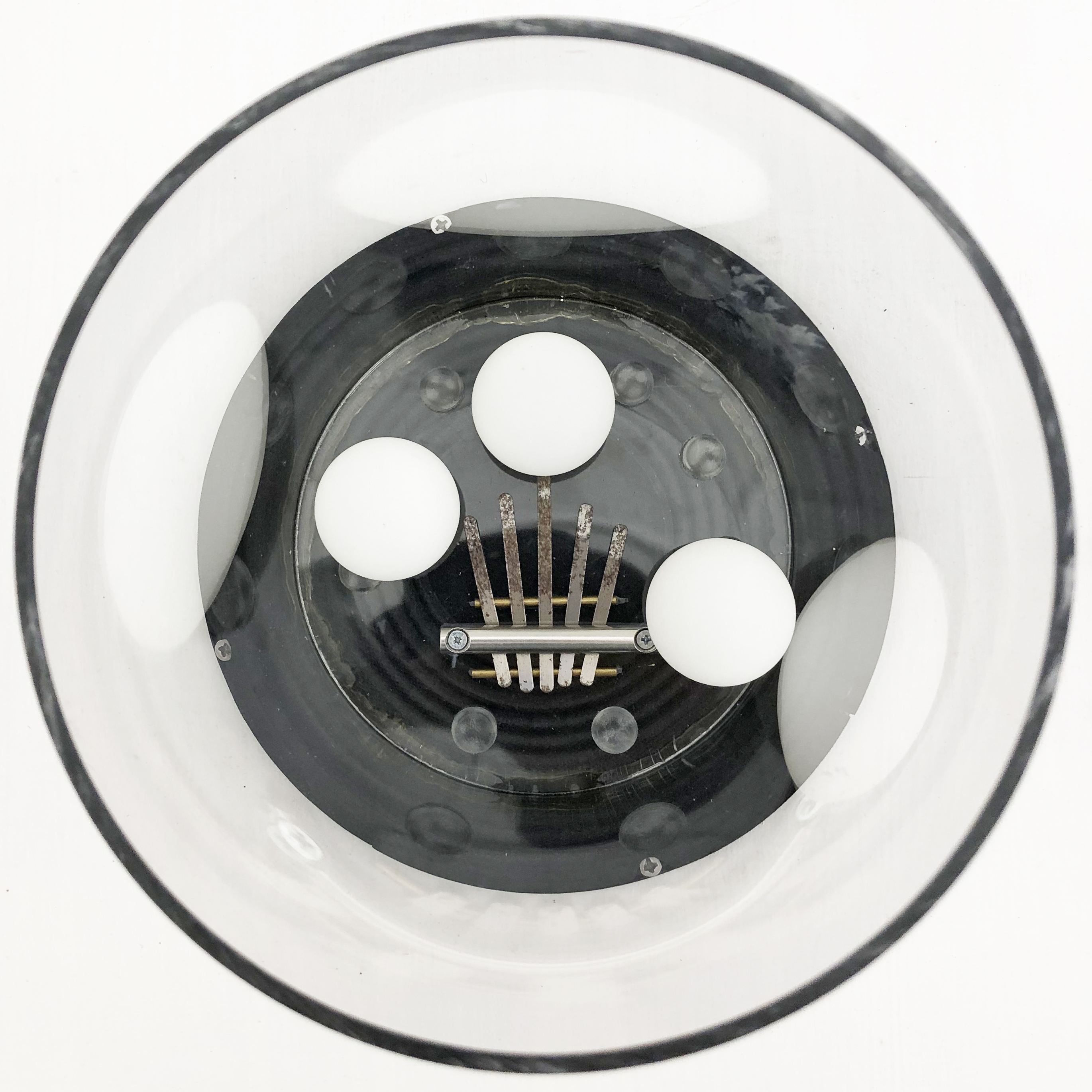 In music, it’s said that only the ear counts. Music or sound. For perhaps “sound” is more suitable to describing Pier Alfeo’s artistic “investigations”. We aren’t speaking of music in this case, not only of sound, but of “sound art”. A label that fully represents the artist’s exhibition. A label, however, that is too general and shallow; like all labels, it leaves something out. Nevertheless, it precisely delineates a field of interest: where sound makes poetry, becomes an analysis of the present, a material to reach more complex concepts and more profound sensibilities. From sculptures to installations to books, sound in Alfeo’s artistic lexis becomes the tool for investigating the material, or rather materials, of our present and future.